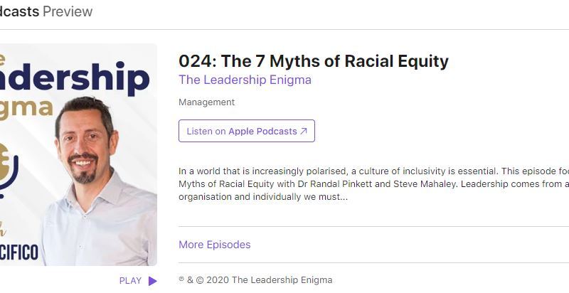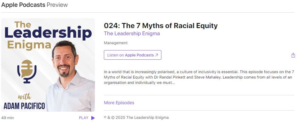 Had a great time talking with Dr. Randal Pinkett – author of the 7 Myths of Racial Equity – and Adam Pacifico, host of The Leadership Enigma podcast. Randal breaks down his 7 Myths of Racial Equity on Youtube. This was a collaborative conversation about the links to leadership and learning / education.